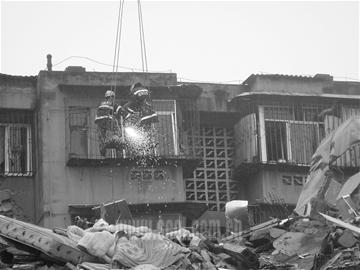 劉子軍努力在懸擺的高空控制著重心,當7根防護欄終于被割斷,劉子軍跳入房間時,他驚出一身冷汗:房間客廳已被震出一個大窟窿,天花板不停地向下掉,太婆把自己反鎖在臥室里,死活不愿出來。