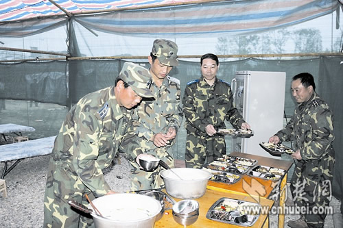 如何保障萬余官兵的吃飯問題,是一件非常重要的事情?战当筷犜缭诔霭l之前,就攜帶了100余套能空投、便于運行的野戰給養器材,每套設備在40分鐘內,可以做出120名官兵的飯菜,四菜一湯。而且,這種器材很輕便,只要2個戰士就能抬動。幾天前,該部又調集了16輛野戰炊事車,投放到漢旺、洛水和鎣華等鎮,保障該部三個師的主力。這種車在40分鐘內能完成150人的飯菜,四菜一湯,能隨著部隊移動,相當于一個野戰廚房。