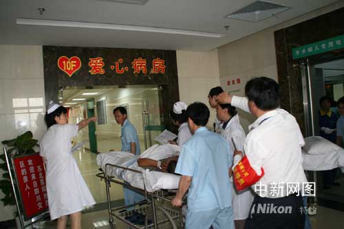 記者坐上載著傷員救護(hù)車(chē),警車(chē)開(kāi)道一路綠燈直達(dá)救治的醫(yī)院,在車(chē)上傷員家屬告訴記者:到處都是我們的親人,一路上大家都很受照顧,已經(jīng)感受到家庭的溫暖。下午四時(shí)許,駛進(jìn)蘇北醫(yī)院,為了迎接傷員,醫(yī)院早就開(kāi)始了準(zhǔn)備,在住院十病區(qū)開(kāi)辟了 “愛(ài)心病區(qū)”。王靜成院長(zhǎng)稱(chēng),這是我們醫(yī)院最好的病房,醫(yī)院為四十名災(zāi)區(qū)傷員親人配備了經(jīng)驗(yàn)豐富的醫(yī)護(hù)人員,確保醫(yī)療安全,盡量降低致殘率,讓他們安心治病、早日康復(fù)。