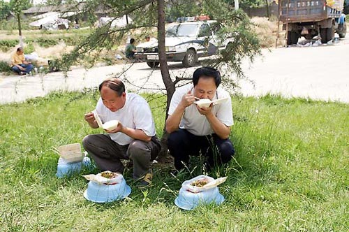 這廣場(chǎng)好大啊,全搭滿了帳篷,里面住著從災(zāi)區(qū)轉(zhuǎn)移出來的人,找了一大圈,好不容易才找到了。這是一個(gè)用竹子編織的圍席圍成的簡(jiǎn)易廁所,不斷有人進(jìn)進(jìn)出出,一個(gè)大坑上面放了幾塊木板,由于板子又薄又窄,人站在上面搖搖晃晃的。所謂茅坑拉屎臉朝外,坑周圍兩排人背對(duì)背,各自默不作聲地解決自己的事情,完事的低頭走人,后面的急忙搶上那個(gè)位置。過慣了現(xiàn)代人的生活,一下子回到這樣一種狀態(tài),真的覺得異常尷尬。