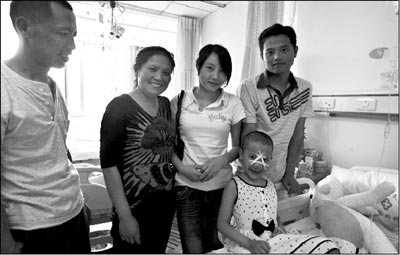 5月25日吃完午飯,一家人聚在小佳淇的病床前,本報(bào)記者為他們拍了張全家福。小佳淇爸媽和哥哥的表情都很僵硬,只有小佳淇笑得開心,還對著記者吐了吐舌頭。
