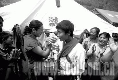 “親一個,親一個!”在滔滔的岷江邊,在凌亂的廢墟旁,在簡單的帳篷里,這樣的聲音對遭遇特大地震災害后的汶川而言,顯得久違而珍貴。正是在這個重災區,在鄉親們熱情的呼喊中,昨日上午,汶川縣威州鎮雙河村的一對年輕羌族戀人攜手走進婚姻殿堂,為這個劫后重生的地方增添了一些喜氣。