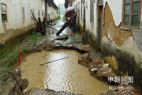據(jù)村民反映,地面塌陷是從6月9日下午3點(diǎn)多鐘開始的,在村民劉細(xì)梅和劉河柱的家門前地面先出現(xiàn)一個(gè)小坑,后來逐漸變大變深。由于地面塌陷引起涉及5戶村民共8間民房受損,墻壁出現(xiàn)裂縫,大的裂縫約5厘米寬,一些房屋門窗嚴(yán)重變型,墻壁表層脫落,房門無法打開,有的房間村民用東西敲擊地板時(shí),地面顫動(dòng),有地下空洞的感覺。