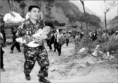 5月12日汶川大地震一天后的13日中午,江蘇黃埔再生資源利用公司董事長陳光標就已從武漢趕到了都江堰,他和公司員工們帶過去的60臺挖掘設備,“第一時間”趕到災區(qū)。在接下來的20多個日夜,陳光標寸步沒有離開,他親自救出了12名幸存者,背出了208個遇難孩子的遺體……陳光標不是“中國首富”,連“南京首富”都算不上,但去年他捐出了1.8億元,名列2008年中國慈善排行榜榜首,被稱為“中國首善”。
