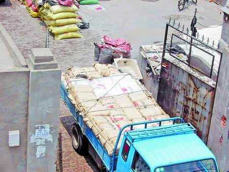 記者在多家生產(chǎn)超薄袋的小廠看到,產(chǎn)品只要一下生產(chǎn)線,排隊(duì)的貨車就立即裝車運(yùn)走。