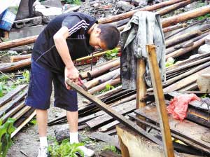 什邡市湔氐鎮(zhèn)的氣溫有點(diǎn)高,徐星手里有根鋼筋,任務(wù)是撬下屋頂仍完好的椽子。他已記不清何家是第幾站,說自己只是在做力所能及的事情。