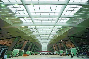 今天早晨記者探訪新北京南站,發(fā)現(xiàn)新建筑大氣、壯觀的現(xiàn)代化風格已經(jīng)整體顯現(xiàn)。與傳統(tǒng)火車站方方正正、候車空間封閉的形象迥然不同,相比之下,新南站建筑更像機場航站樓;視野通透、裝飾風格簡潔明快。9米高的高架候車大廳白天不需要燈光照明,陽光透過屋頂采光帶傾瀉下來。
