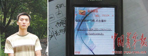 陳回鄉(xiāng)后,父親向他倒苦水:手機(jī)中連續(xù)收到100多條短信,里面不少有黃色圖片和挑逗性語句,為此他多掏了不少冤枉錢。而且,這類短信似乎沒有停止的跡象,最多一天甚至收到30多條。