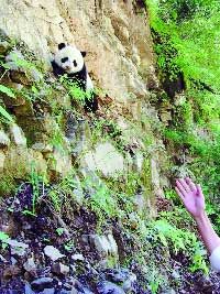近日,馬先生一行5人來到太白縣考察生態農業項目,7月5日上午,他們從太白縣城出發,前往黃柏塬鄉。上午10時30分許,車駛出30多公里時,馬先生看到路邊有群人圍著什么東西,順著眾人的視線看到,離地面大約4-5米的崖壁上竟有一只大熊貓。一行人喜出望外,他們從來沒有想過自己還有緣看到野生大熊貓,于是放下手頭的工作加入到守護大熊貓的行列中。