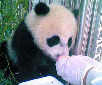 在陜西省寶雞市太白縣被營救的野生大熊貓6日被送到省大熊貓搶救中心后,一直拒絕人工飼養,到現在也不進食,任憑大家用各種食物引誘,就是不吃。