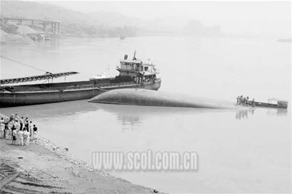 當日上午,屏山縣一艘貨船駛往普安鄉漁翁廟碼頭作業。9時10分許,該船在完成作業離開碼頭時,船體突然進水。由于正在漲水的金沙江水流湍急,很快就將進水的該船沖翻后船底朝天,船上8名船員全部落水。此后,船底朝天、重達100多噸的巨大鋼鐵漂浮物失去控制,像一枚漂流在江中的“水雷”,時沉時浮沖向下游,險情突發。