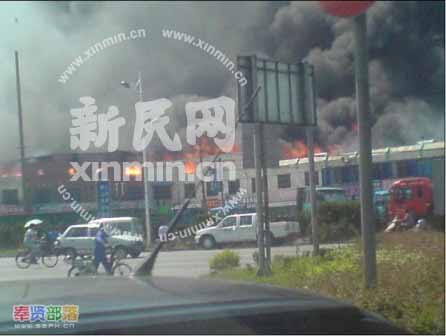 2008年7月17日下午3點10分,新民網記者再次連線網友楊先生,楊先生稱,起火工廠馬路對面有一個加油站,情況十分危險。楊先生還告訴新民網記者,由于火勢過大,工廠旁邊的居民小區已經受到了影響。(新民網 胡彥珣)