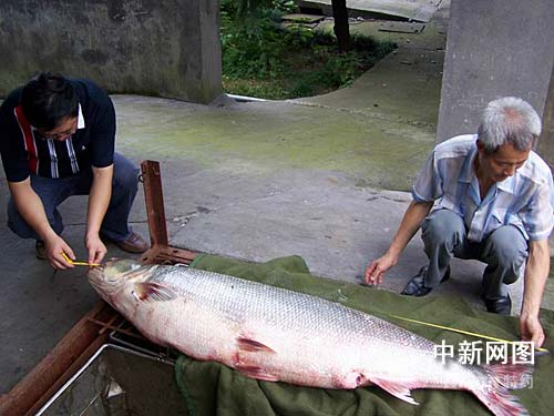 中新網杭州7月20日電(記者龔讀法 通訊員龔一磊) 日前,浙江省杭州千島湖發展有限公司捕撈隊在千島湖宅上攔網上捕獲特大鱤鰍魚一條.該魚長165cm,胸圍91cm,重54公斤,是近年來捕獲的最大鱤鰍魚,同時也是今年以來千島湖內捕獲的第三條超百斤的大魚。目前,該鱤鰍魚已送上海水產大學制作標本。