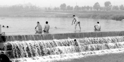 近日每天清晨,在西安東郊浐河邊的人工湖畔:一大幫光著屁股的成年男子,或游于清澈湖水中、或坐或站在堤岸上……在地處內(nèi)陸城市的古城西安,這不能不算是一件奇事。