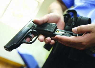 六四式手槍、子彈、辣椒水、手銬、警棍、強(qiáng)光電筒……民警們很仔細(xì)地檢查著腰帶上的警用器械,特別是手槍,他們進(jìn)行了更為仔細(xì)的檢查,以便確保扳機(jī)放在了保險(xiǎn)上。