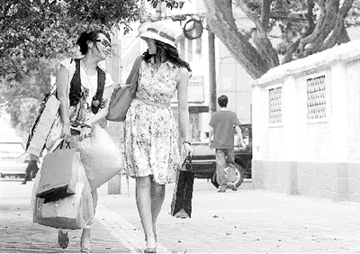 小白(左)不但陪客戶(hù)逛街,還幫她提物品。 常亮/攝