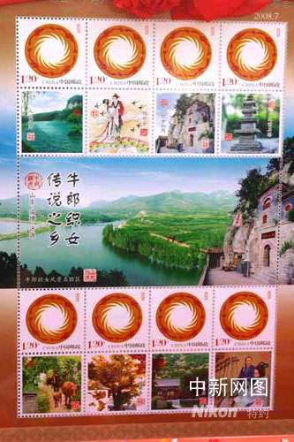 據介紹,在中國民間四大愛情傳說中,中國郵政僅發行了“許仙與白娘子”、“梁祝”郵票,而“牛郎織女”郵票在非洲的加納和中國的臺灣、香港早在10年前已經發行。這次沂源“牛郎織女”個性化郵票的發行填補了國內的空白。