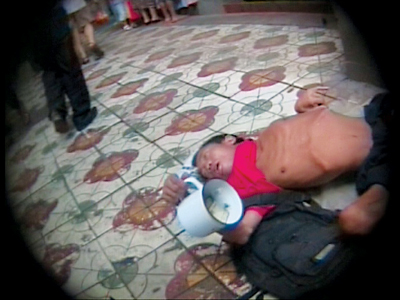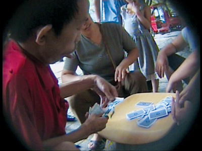 直到中午12點左右,乞討男子悄悄做了個手勢,綠衣男子立刻跑來將乞討者背在背上離開下河路!苞棥币贿吪臄z,一邊跟著兩人向魚洞車站走去。隨后,兩人坐上開往李家沱的公交車。此后,讓人意想不到的情況發生了,“鷹”看到,兩人吃過午飯后,乞討者竟來到李家沱車站邊的東南亞農貿市場門口斗地主。