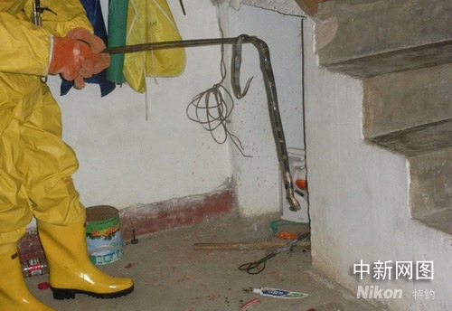 當消防戰士們趕到位于北岙鎮城西路332弄26號許女士家中時,戰士們就發現了蛇的蹤影,這條蛇在廚房樓梯間的角落里盤作一團,拇指粗的身體,蛇頭不時吐出血紅的信子。