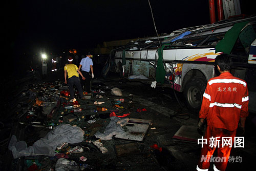 事故現(xiàn)場,救援人員正在對尸體進(jìn)行處理。