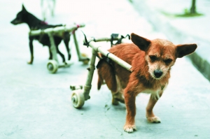 救助中心的條件比較簡陋,一開始只有8名工人,但每一只被救回來的貓狗在這里都受到了最好的照顧。如今,雖然不少狗都落下了終生殘疾,但身體狀況和精神狀況都基本恢復正常。對于它們來說,還能拉著“輪椅”繼續生活下去本身已是不幸中的萬幸。