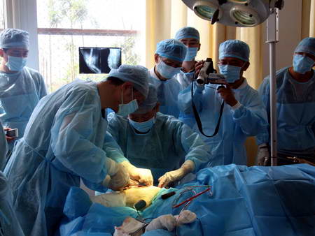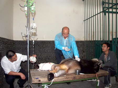 基地專家告訴四川新聞網(wǎng)記者,骨科手術(shù)要求很嚴(yán),在所有手術(shù)中僅次于心臟手術(shù),稍有不慎就可能造成感染引發(fā)骨髓炎,并有截肢的危險(xiǎn)。為確保手術(shù)萬(wàn)無(wú)一失,基地獸醫(yī)與成都軍區(qū)八一骨科醫(yī)院的專家反復(fù)討論手術(shù)方案,為減少運(yùn)輸和增加感染,專家一致決定將手術(shù)地點(diǎn)確定在基地的新獸醫(yī)院。