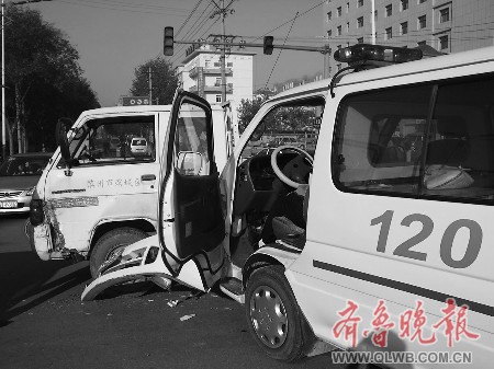 10月7日上午8點(diǎn)10分,一輛從濱州黃河三路由東向西直行的120急救車行駛至黃河三路與渤海五路交叉口時(shí),與一輛由北向南正常行駛的小貨車相撞,120車車頭底部當(dāng)場被撞了下來,所幸車內(nèi)人員沒有受傷。