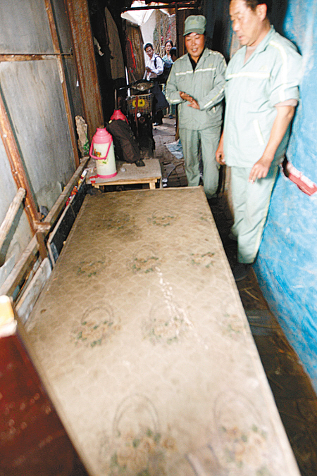 “大雁塔南面的雁塔南路,一個巨幅廣告牌后面有個長方形棚子,我鉆進去后發(fā)現(xiàn),里面是一個臨時搭起的窩棚,是保潔員搭的,他們只是想在遇到下雨下雪時,有個避雨雪的地方。他們說很羨慕有些街道有保潔員道班,可他們這兒沒有,只好自己想辦法找一處避風(fēng)雨的地方!弊蛉,一位名叫“秦時明月”的網(wǎng)友在西安一家網(wǎng)站發(fā)布的帖子引起了記者的注意,從所附的5張照片上可看到,這個搭在廣告牌后面的小窩棚內(nèi),鍋碗瓢盆俱全,還有床鋪,這個簡陋的小窩成了保潔員臨時的“家”。這位網(wǎng)友說拍到這組照片后心里發(fā)酸,在繁華都市的背后生活著這樣一群“城市美容師”,靠著堅毅和吃苦,頑強地?fù)纹鹑业闹負(fù)?dān)。