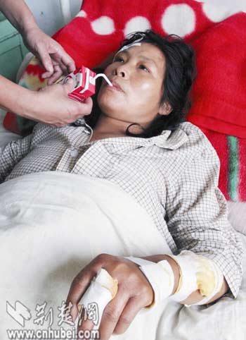 昨日,記者在新洲區陽邏衛生院見到,傷者魏秀林(女,44歲)的頭部、胸腹部、背部和四肢有十余處傷口,其中最長的達15厘米。