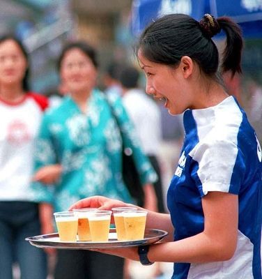 “沒辦法,我們工錢是按賣出啤酒多少算提成的,客人有時候要我們喝,不然就不買,我們也只能陪著喝!币幻麌a啤酒促銷小姐說。