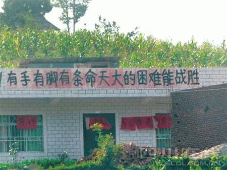 地震重災(zāi)區(qū)青川縣棗樹村的樸實莊稼漢,面對天災(zāi),他們原創(chuàng)的兩條標語“吼”出了精氣神,得到了溫家寶總理的贊譽。昨日,“出自己的力,流自己的汗,自己的事情自己干”、“有手有腳有條命,天大的困難能戰(zhàn)勝”這兩條標語,由青川縣政府捐贈給了地震文物指定征集單位——四川省文物考古研究院。據(jù)該研究院院長高大倫介紹,兩條標語是該院收到的第一份災(zāi)后重建標語文物,將被永久收藏于地震博物館。