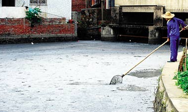 昨晚7時許,兩車不合格液態奶在廣州石井潭村垃圾壓縮站銷毀,壓縮后的液奶包裝袋被運往垃圾填埋場,但壓縮出來的液態奶卻被直接排入垃圾站旁的河涌。附近街坊反映,這樣的銷毀工作前晚已有一次,白天溫度升高,牛奶發酵,河涌內散發出的臭氣讓人難受。