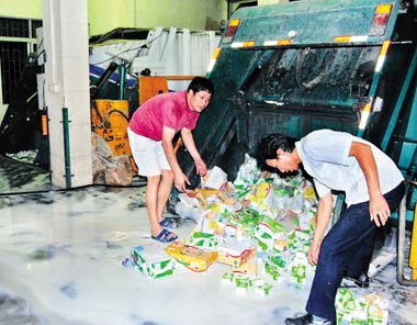 高先生說,國家規定對9月14日前出場的不合格乳制品進行銷毀處理,但并沒有規定具體銷毀方法。他們選擇將液態奶送垃圾站處理,是因為他們認為這是一種比較正規的銷毀方式。而在小城市,一般只是將成箱液態奶集中后碾壓,然后掩埋。