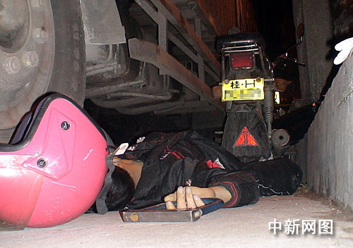 被大貨車擋住無路可逃的犯罪嫌疑人襲警時被槍擊中倒地身亡。溫揚勤 攝