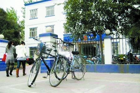 昨日下午6時許,按照網友提供的圖片,記者找到了鄭州市北林路派出所,此時門口已經沒有用手銬鎖的自行車了。