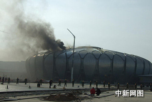中新網濟南11月11日電(記者 楊東亮 張榮容)今天上午11時左右,2009年第十一屆全運會場館———山東省會濟南奧體中心正在施工的一個體育館頂部發生火災。這是在今年七月份濟南奧體中心在建球類體育館曾因切割作業已發生過一次火災后,在建場館發生的又一次火災。