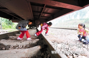 學生每天都要鉆車底上下學 記者 冉文 攝