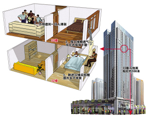 昨天一大早,歹徒開始給他“做工作”。方要求到陽臺外面透一下氣,“考慮考慮。”對方同意了,他們并不擔心方會跑掉,因為33樓距地面至少有100米高。