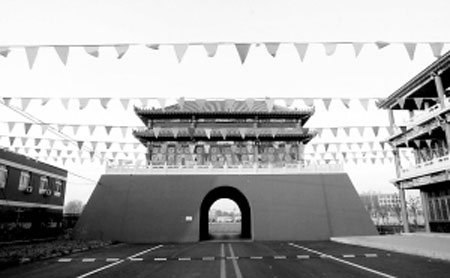昨天,在位于通州區土橋新橋東側大約500米處皇木廠村村口,記者看到了這座仿古的城門樓——整座門樓至少30米高,樓身為紅色,只有一個門洞。