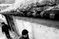 從第一座正殿旁邊的小門進入寺內,路過的紅色院墻從上到下裂開一道大縫隙,已經搖搖欲墜。進入寺后,眼前更是一片凋零。寺朝東向,是十分規整的兩進四合院。眼前所有殿室的灰色屋瓦幾乎都變成了半黑半灰色,雜草叢生,不少地方瓦片已殘缺不全,“下雨下雪的時候,屋里就會漏水,”園內負責房屋的工作人員馮先生告訴記者,“園里有自己的小施工隊,做些力所能及的修修補補,因為能力有限,也只能是盡著那些漏得嚴重的補。”