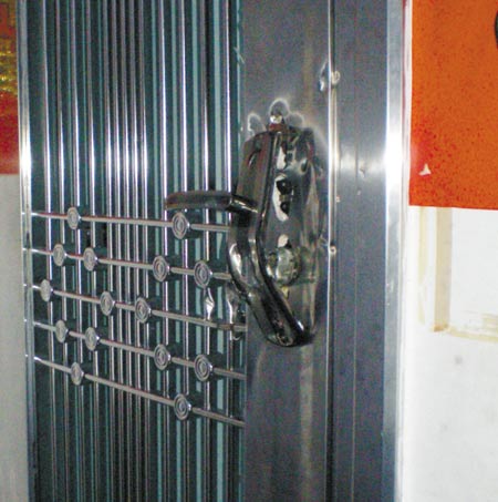 記者沿樓梯上到了這個房間,看到它的門鎖已經(jīng)壞了,估計是行動時警察破門時撬壞的。鐵門下面擺放著兩對拖鞋,記者試著敲了兩下門,里面有個女人來開門。當記者問她“前天晚上警察搜出毒品的是不是在這個房間”時,對方用電白土話連說:“不知道!”記者再下到一樓,兩個正在散步的婦女向記者確認:出事的就是那個房間。