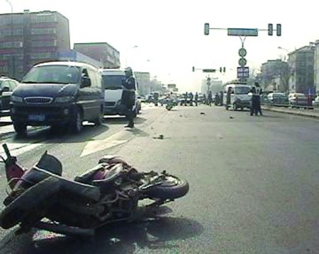 “騎車的男子已被120急救車拉走了。”現場的張先生告訴記者,大約10點鐘,路上突然傳來急促的救護車警報聲,由遠及近;還沒等他反應過來,尖銳的剎車聲刺入耳膜,緊接著“咚”的一聲,張先生看到,一輛公交車前,一名騎電動車的男子連人帶車向北飛了出去,“一開始,我還以為是公交車撞的呢”。
