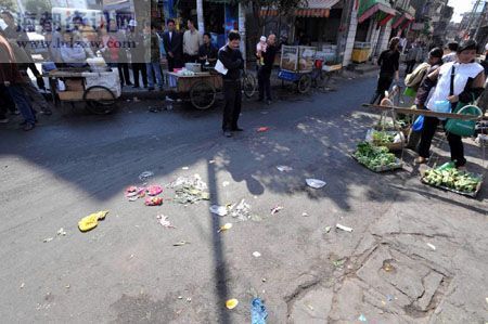 農民工老熊是現場目擊者,他向記者描述了事情的經過:當時老婦站在泉頭超市門前賣氣球,10時左右,一輛工具車開過來,聽說是城管來了。