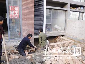 下午,記者來到萬達紫金明珠小區。進了大門一直往里走,36幢就在路邊上,施工現場一目了然。這里一樓的住戶都有院子,正在施工的那家人,院子門口有施工人員進進出出。湊近了看,院子里堆滿了磚塊、水泥,幾個施工人員正在砌磚、刷墻,忙得熱火朝天。正如網上的照片,這家房屋的正下方被打空了,形成一個長方形的大坑,約有2米多深,也就是所謂的“地下室”。