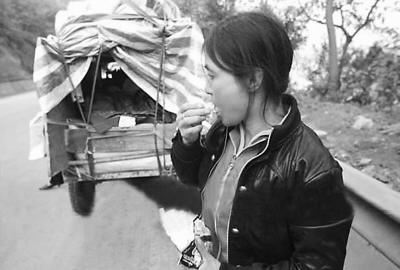 累還只是一小問題,吃飯、睡覺更難解決。為減少開支,每人一天最多吃兩頓飯。臨行前,每家都準(zhǔn)備了幾箱方便面,不過,因?yàn)闆]有熱水,方便面大都被干啃下肚。睡覺是走到哪睡到哪——男人讓出車廂在公路邊上打地鋪,女人小孩在車廂內(nèi)將就。洗臉、洗頭,更是奢望。十多天下來,每個(gè)人的臉和手都已干裂,風(fēng)刮得生痛。