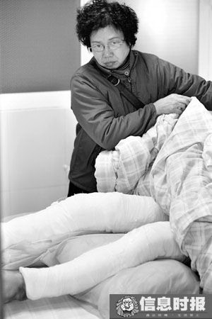昨日上午,記者前往廣州市紅十字會醫院看望受傷的蕭河。今年53歲的蕭河躺在病床上,頭發花白,戴著黑框眼鏡,精神欠佳。