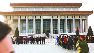 不到8時,紀念堂還未開門,排隊等候的隊伍就已經排出數十米遠。住在(北京)西城的康殿桐老人今年已經74歲高齡。今天他特意早起,和老友一同趕到毛主席紀念堂,康殿桐告訴記者,他每年9月9日和12月26日都會來紀念堂瞻仰。