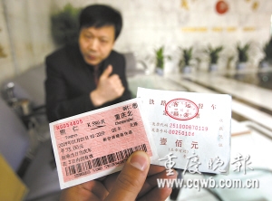 王柏華是恒天無極照明西南總代理的副總經理。王介紹,年前他到貴州銅仁招商,元旦當天和朋友陳先生一起在銅仁買了兩張從銅仁到重慶的K586次列車短程票,無座。