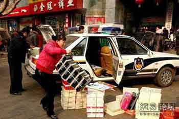 發(fā)帖者網(wǎng)友“明宇”在名為《何等猖狂:山西臨汾開(kāi)著無(wú)牌警車(chē)做買(mǎi)賣(mài)》的帖子中稱,他在臨汾市中心繁華區(qū)遇到兩輛無(wú)牌“警車(chē)”。其中一輛停在某市場(chǎng)門(mén)口的路邊,從車(chē)上下來(lái)一名穿制服但沒(méi)戴帽子的“警察”。這名“警察”與一婦女一起從車(chē)上往下卸貨。從發(fā)帖者上傳的照片看,“警車(chē)”的后排座位上和后備箱里都裝滿了貨,兩人卸下的包括鞋盒、塑料袋等貨物擺了一地。“怎樣使用警車(chē)國(guó)家有嚴(yán)格的規(guī)定,不知這位警察是否知道?”發(fā)帖者說(shuō)。