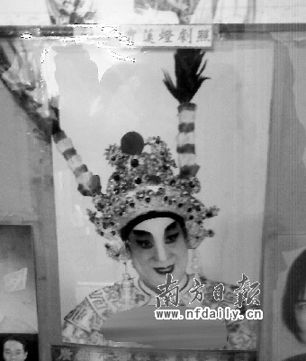 位于龍津東路708號(hào)—712號(hào)的榮華樓,是廣州現(xiàn)存少數(shù)的百歲老茶樓之一。昨日下午,榮華樓的樓梯口處貼著云峰粵劇團(tuán)演員的劇照,團(tuán)長(zhǎng)白×峰武生打扮的劇照頗為搶眼,徒弟何×瑩則是一張素裝照。茶樓服務(wù)員介紹,云峰粵劇團(tuán)在此駐唱兩年多,“峰哥”是團(tuán)長(zhǎng),擅長(zhǎng)武術(shù),尤其是螳螂拳,云峰劇團(tuán)每天最少上一場(chǎng)折子戲,吸引不少?gòu)V州老戲迷來(lái)捧場(chǎng)。